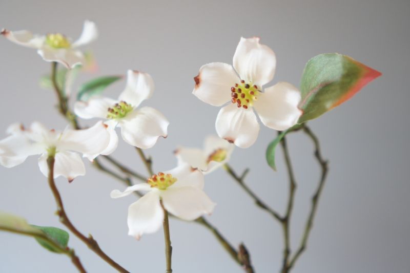 インテリアとしても映える落ち着いた色合いの白い花みずきのお供え花(高級造花)です。