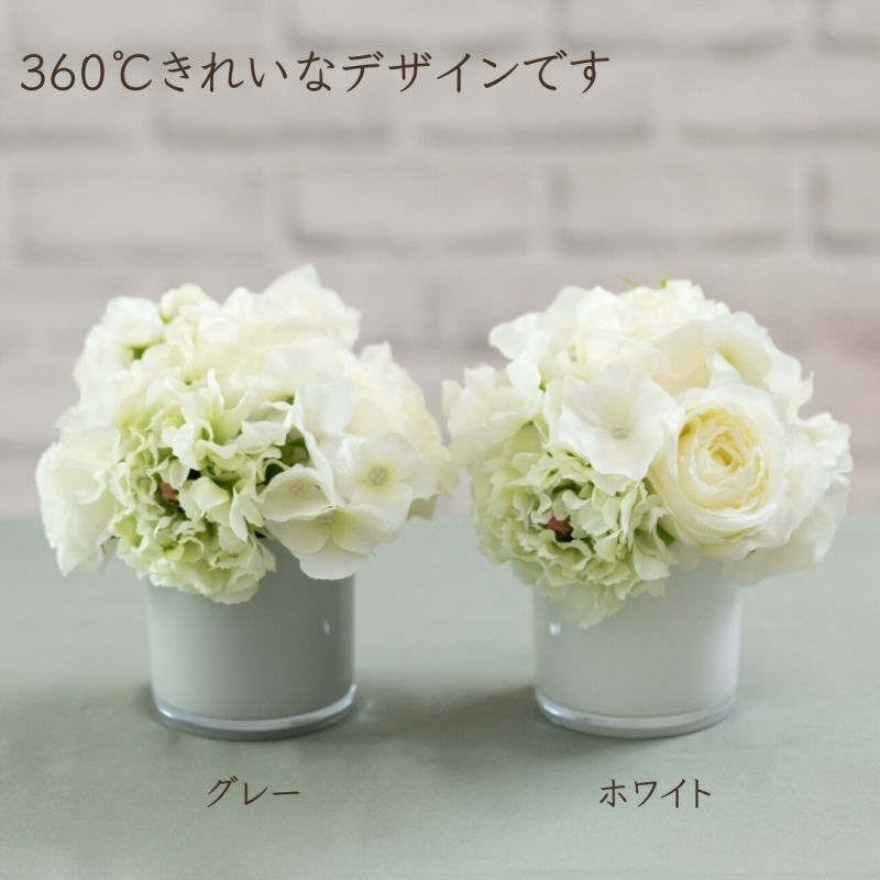 お悔やみ用のアレンジメント(高級造花、Sサイズ、ホワイト or グレー) [m-ar001s]
